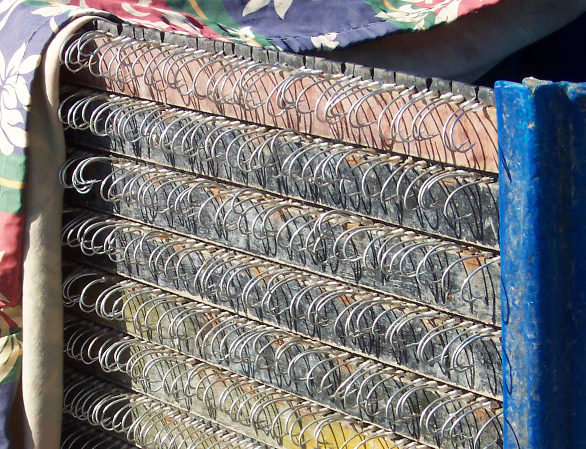 A liña está formada por un cabo principal que recibe o nome de liña propiamente dito ou sedela, á que se lle unen un ou varios anzois e un chumbo para asegurala inmersión dos anzois.